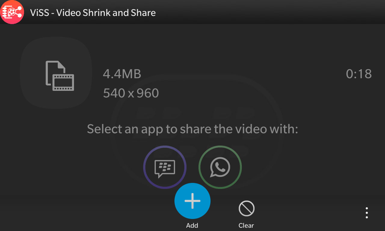 Esta aplicación es de mucha utilidad, y hace lo que sea posible para reducir la longitud de vídeo y ser compartido a través de BBM y WhatsApp que tienen limitaciones de tamaño de archivo. Viss determina automáticamente el método de compresión de la derecha para reducir el tamaño de su archivo de vídeo de gran tamaño a un tamaño que se puede compartir.