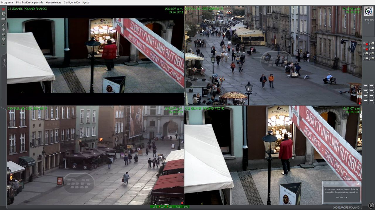 Descargar un vídeo RDT sin software cliente y conectarse a nuestro servidor de demostración para ver imágenes en directo a partir de dos cámaras de televisión de alta definición y cámaras IP PTZ de control remoto.