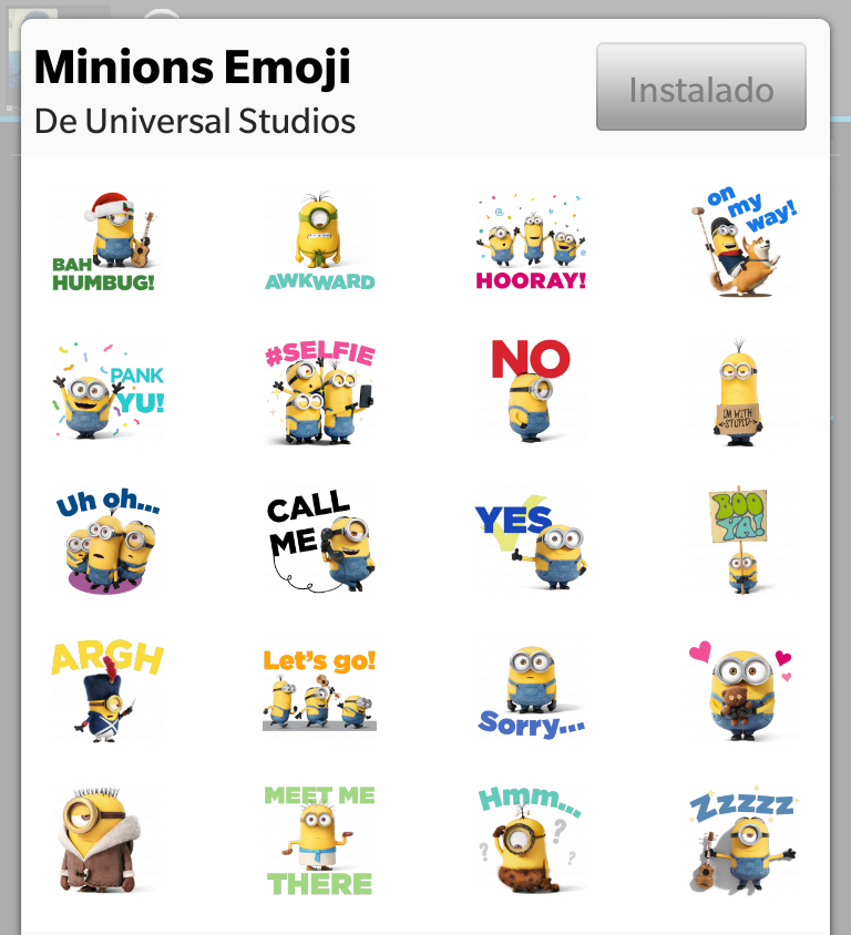 Minions Emoji, es un nuevo pack de stickers, disponible de manera gratuita para todos los usuarios de BBM, le recordamos que también puede ser transferido con sus amigos de BBM, solamente seleccione gratis en la parte superior y click en gratis. también es compatible en iPhone, Android y Windows Phone.