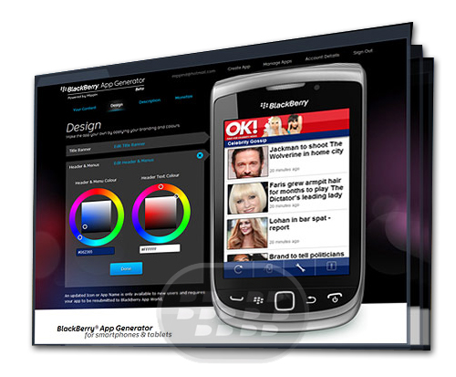 RIM ha presentado su nueva herramienta, la BlackBerry App Generator, usted puede construir una aplicación para teléfonos inteligentes BlackBerry ó playbook en menos de 10 minutos sin necesidad de ninguna técnica o conocimientos de programación. Usted puede construir aplicaciones en tan sólo unos minutos e incluso tener la integración BBM en ellos.