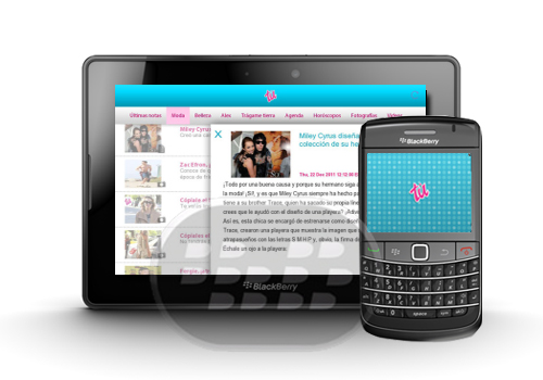 TV y Novelas, Vanidades, Caras y Tú; tanto como para dispositivos BlackBerry como la tablet PlayBook